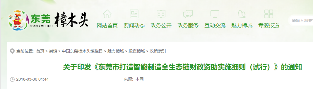 《東莞市打造智能制造全生態(tài)鏈財(cái)政資助實(shí)施細(xì)則(試行)》正式印發(fā)。對(duì)購買先進(jìn)設(shè)備自動(dòng)化改造的企業(yè),資助標(biāo)準(zhǔn)提高至設(shè)備投入額的25%到50%以上,單個(gè)項(xiàng)目最高資助500萬元。